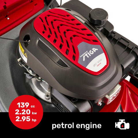 A Mountfield favourite -the SP46 is a fantastic self-propelled, petrol-driven mower possessing all the features you need in a no-nonsense, hardworking lawnmower. The 46cm cutting width with six cutting heights to choose from and a spacious 60-litre canvas grass bag makes light work of medium-sized lawns. A superb mowing machine!- Powered by STIGA 139cc petrol engine