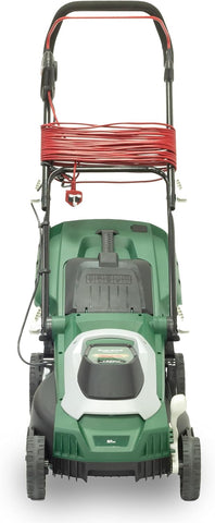 With a 15-metre cable length, this lawnmower provides ample reach without the need for additional extensions, adding to the convenience of the mowing process. Furthermore, backed by a 3-year guarantee and supported by a dedicated UK-based customer service team, this lawnmower offers users peace of mind regarding its quality and aftercare support.